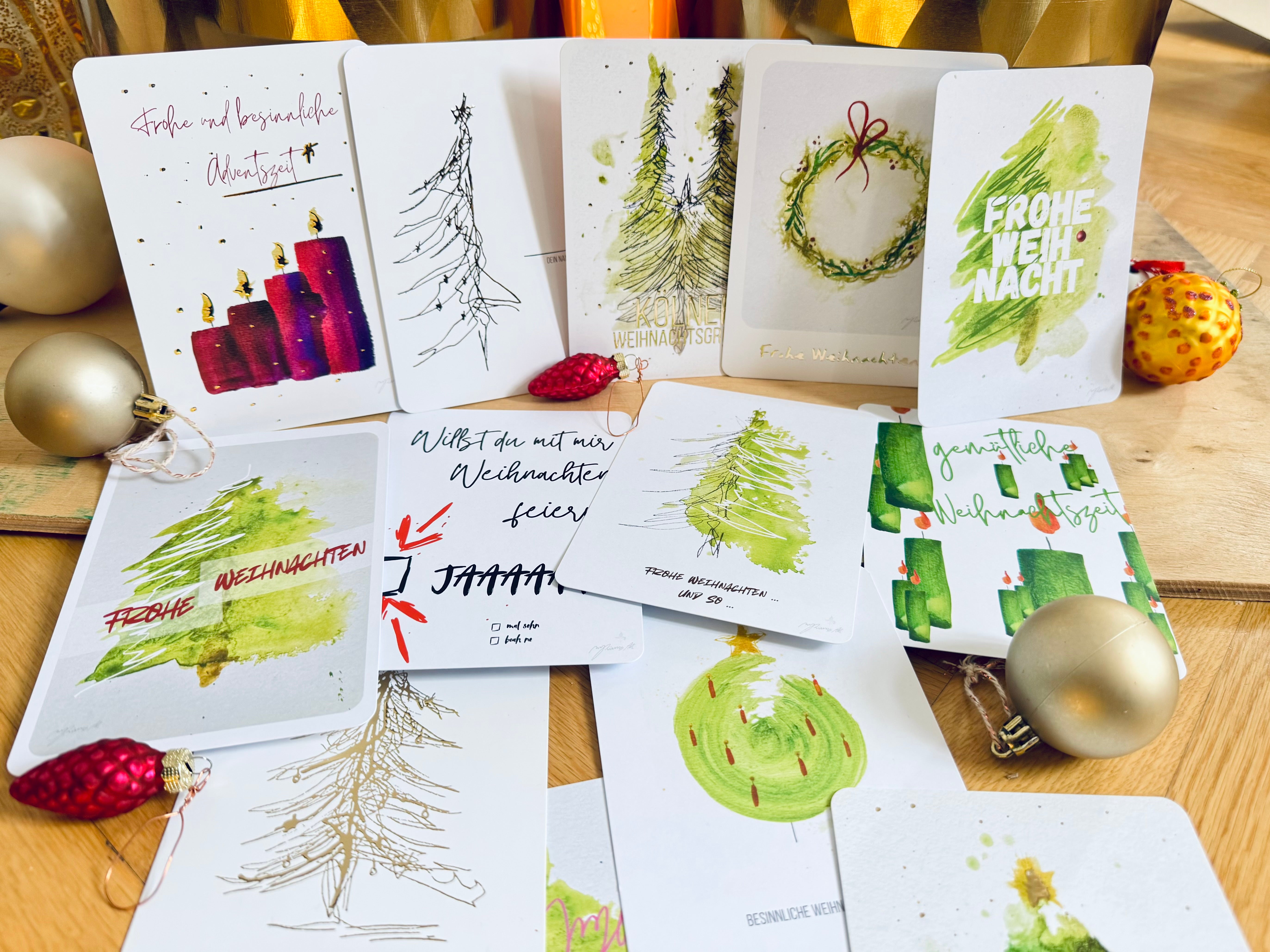 Die Karten sind ideal, um Weihnachtsstimmung zu verbreiten, Weihnachtsgrüße zu verschicken, sich zu bedanken oder Geschenke charmant zu ergänzen.